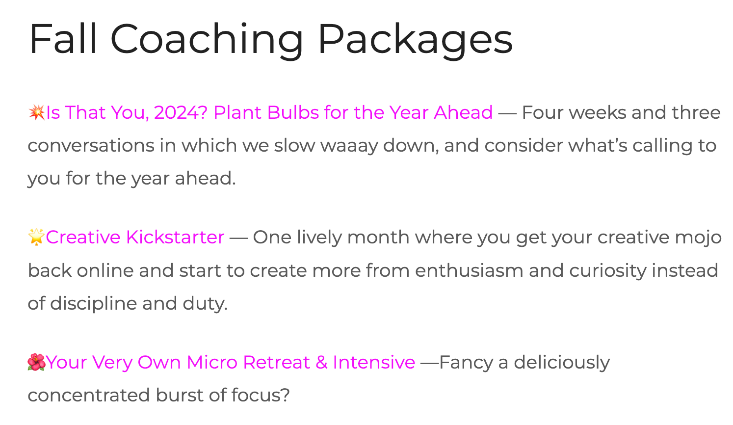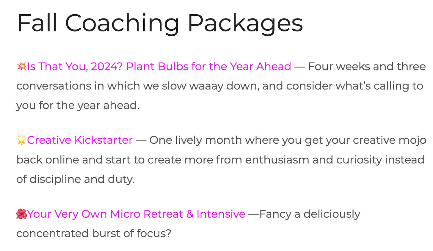 To sign up for special Fall Coaching Packages, go to Everyday Creative Coaching. An adventure awaits. XO